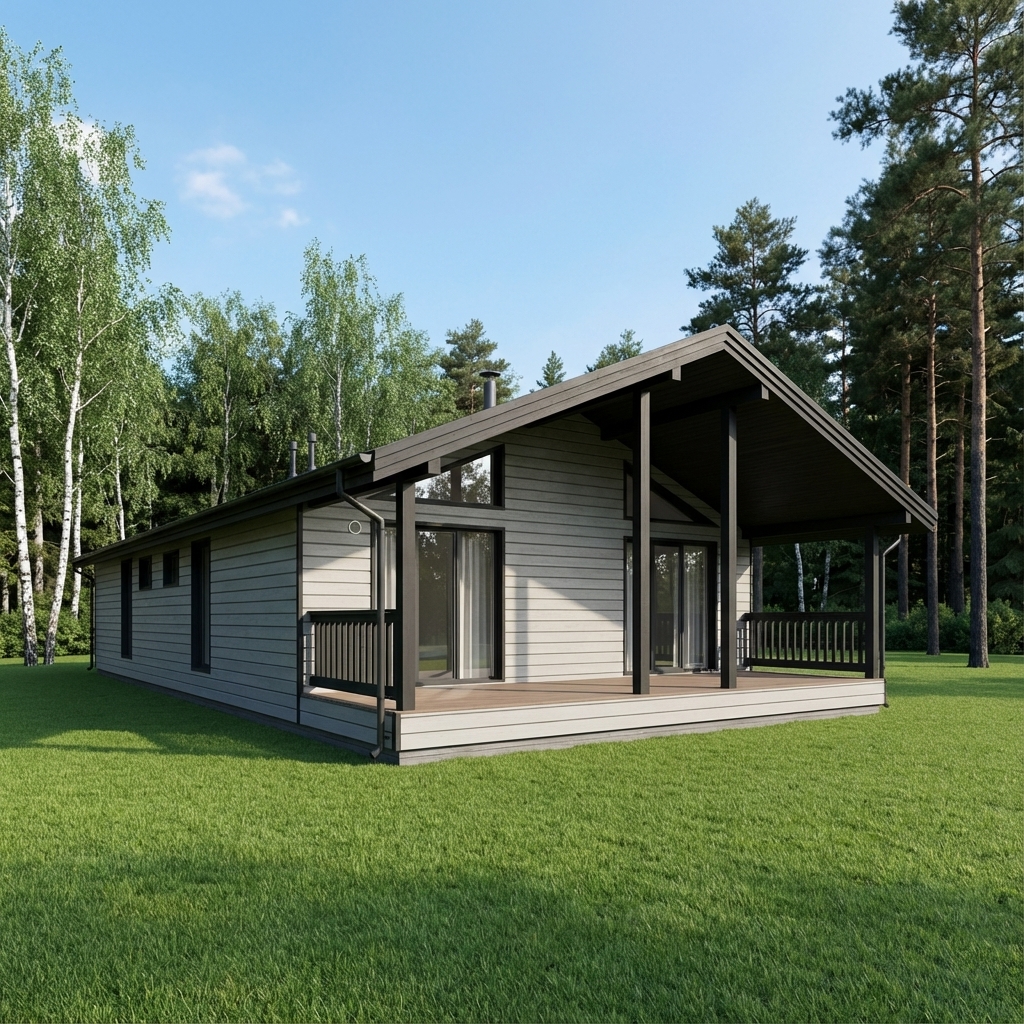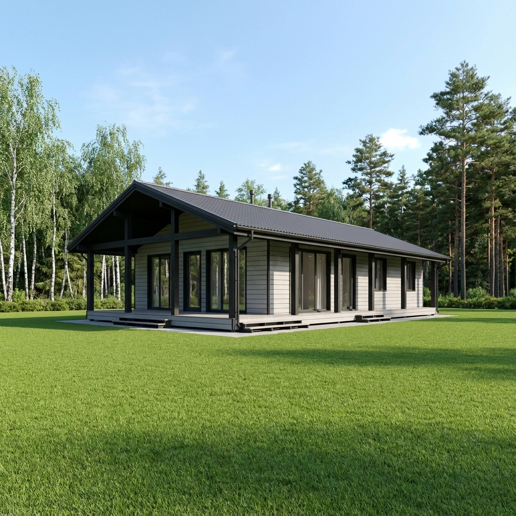 Металлочерепица: Grand Line 0,45 мм Classic Свесы кровли: ширина одного свеса составляет не менее 500 мм Подшивка свесов: строганный планкен камерной сушки 20×96 мм |