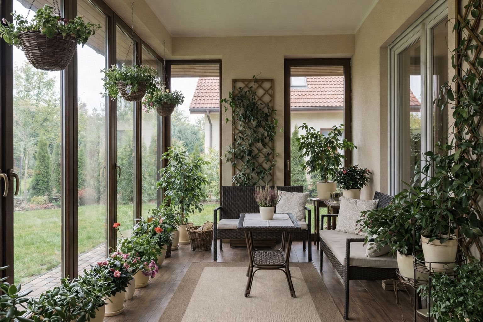 Главное отличие — открытость. Терраса — это улица с удобствами. Веранда — комната, но ближе к саду. На террасе вы дышите свежим воздухом, чувствуете ветер и запахи лета. На веранде — тепло и сухо, при этом вид за окном остаётся.